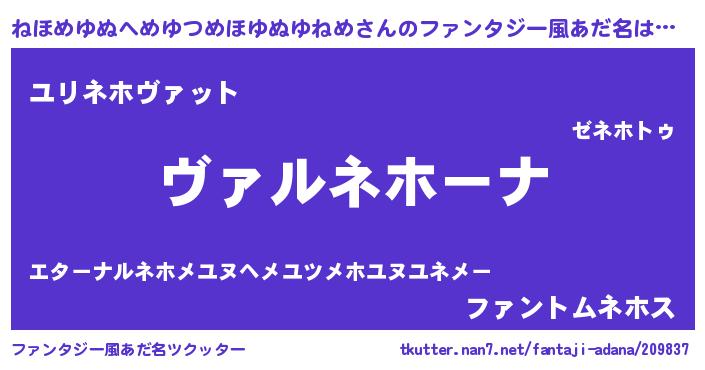 | 男性向けラノベタイトル風あだ名 | 『この素晴らしい世界にねほめゆぬへめゆつめほゆぬゆねめを!』 |