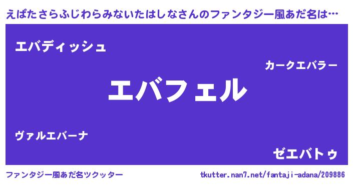 | 男性向けラノベタイトル風あだ名 | 『エバタサラフジワラミナイタハシナアートオンライン』 |