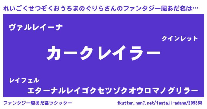 | 胡散臭い通販商品みたいなあだ名 | 『世界中を虜にした100年もののヴィンテージワイン…その名も「れいごくせつぞくおうろまのぐりら」』 |
