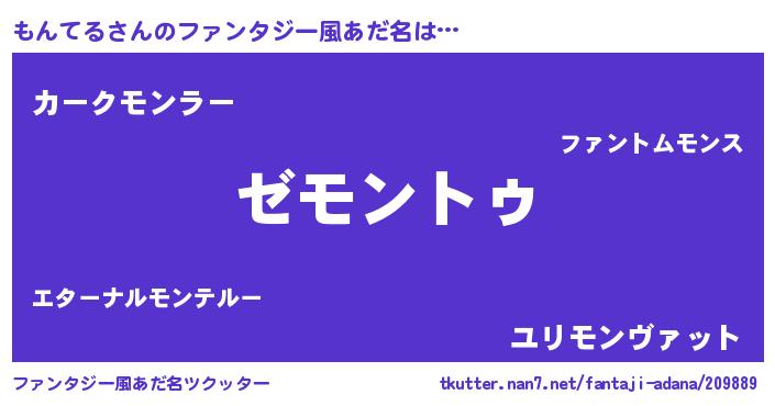 | 男性向けラノベタイトル風あだ名 | 『もんてるに滅ぼされるだけの簡単なお仕事です』 |