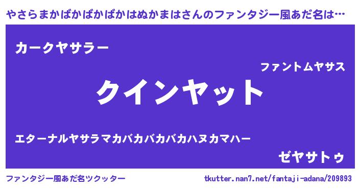 | 男性向けラノベタイトル風あだ名 | 『ノーゲーム・ノーヤサラマカバカバカバカハヌカマハ』 |