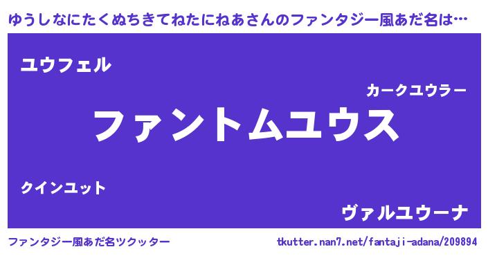 | ポケモン風あだ名 | 『ヒユウシナニタクヌチキテネタニネア』 |