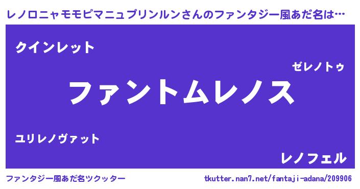 | 胡散臭い通販商品みたいなあだ名 | 『信頼と実績のサプリメント…その名も「レノロニャモモピマニュプリンルン」』 |