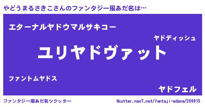 | 欧米人風あだ名 | 『トリンドルやどうまるさきこ』 |