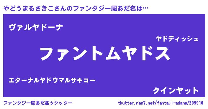 | 女子向けラノベタイトル風あだ名 | 『やどうまるさきこは平凡を望む』 |