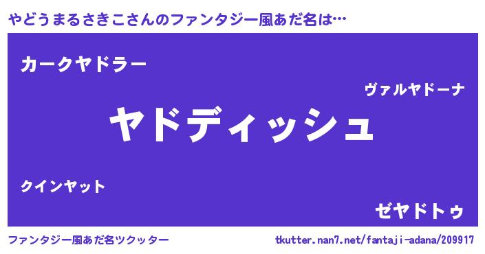 | 欧米人風あだ名 | 『ダルビッシュやどうまるさきこ』 |