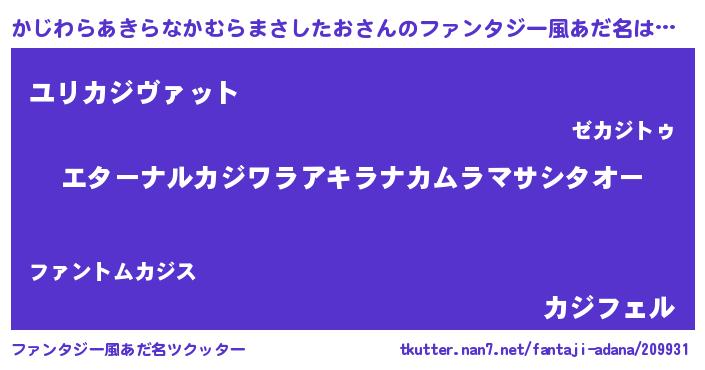 | 欧米人風あだ名 | 『かじわらあきらなかむらまさしたおクリステル』 |