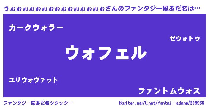 | 男性向けラノベタイトル風あだ名 | 『うぉぉぉぉぉぉぉぉぉぉぉぉぉぉぉの憂鬱』 |