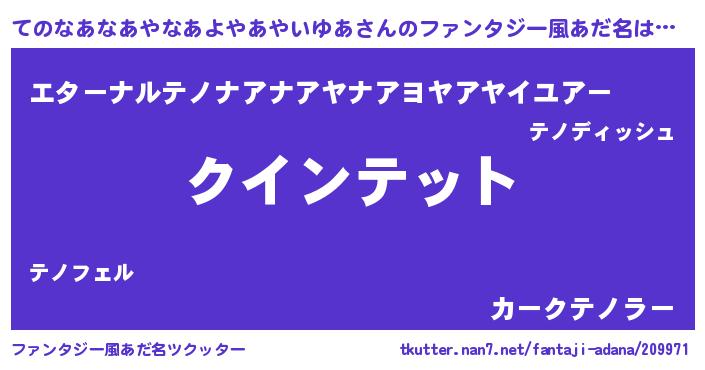 | 伝説のあだ名 | 『救世主となる占い師てのなあなあやなあよやあやいゆあ』 |
