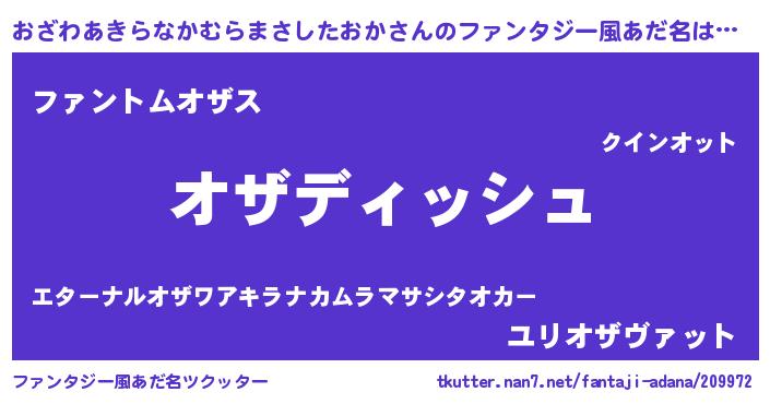 | 女子向けラノベタイトル風あだ名 | 『異世界で失敗しない100のおざわあきらなかむらまさしたおか』 |