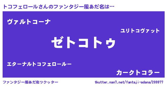 | ポケモン風あだ名 | 『トコセウス』『トーコイ』 |