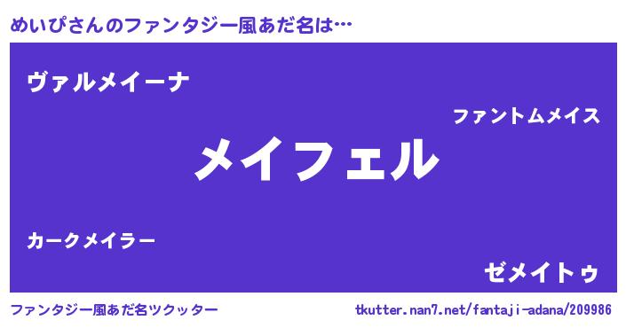 | 意味不明あだ名 | 『ペロリンめいぴ』『自称めいぴ』 |