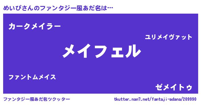 | ポケモン風あだ名 | 『メイチュウ』『メロメッイ』 |