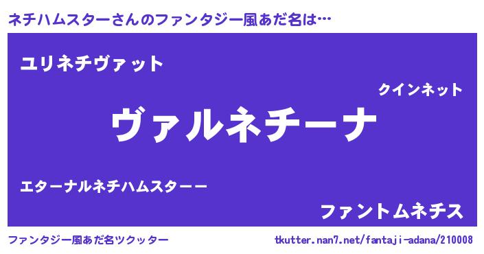 | 意味不明あだ名 | 『住所不定無職ネチハムスター(71歳)』 |