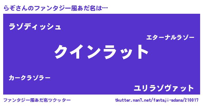 | 女子向けラノベタイトル風あだ名 | 『らぞ夫妻のなれそめ』『らぞの契約王妃』 |