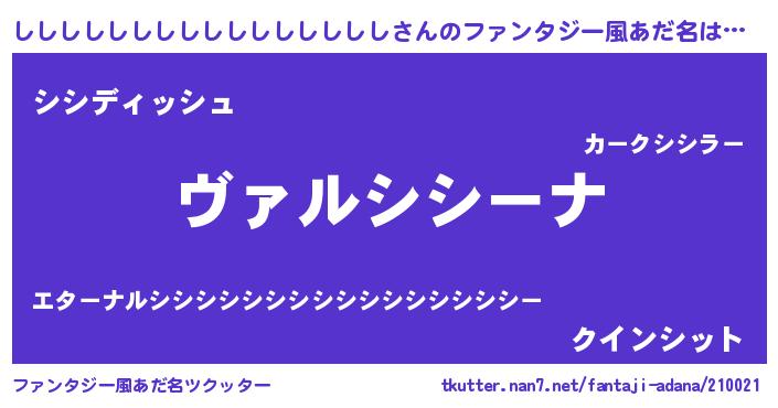 | 男性向けラノベタイトル風あだ名 | 『魔弾の王としししししししししししししししし』 |