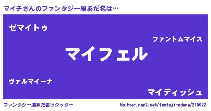 | 意味不明あだ名 | 『ペロリンマイチ』『自称マイチ』 |