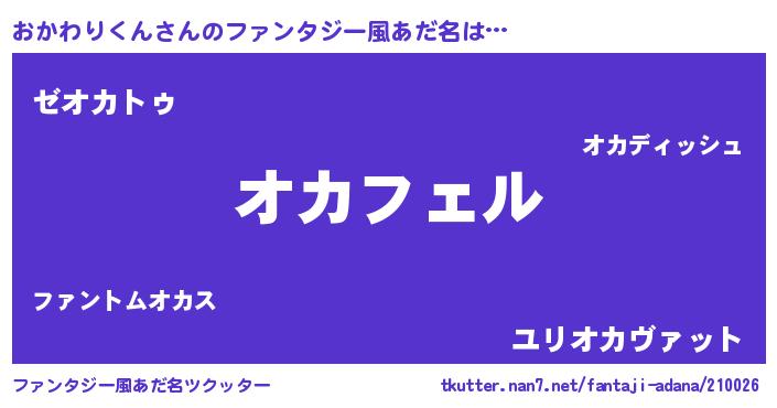 | ヒーロー風カッコイイあだ名 | 『スーパーオカワリクン』『幻影騎士オカ』 |