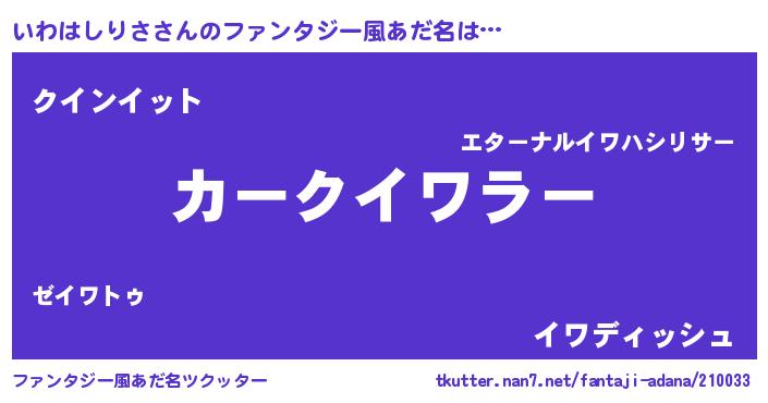 | 欧米人風あだ名 | 『いわはしりさ・ステッグマイヤー』 |
