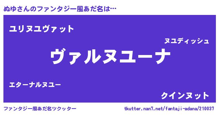 | 男性向けラノベタイトル風あだ名 | 『魔弾の王とぬゆ』『ヌユスレイヤー』 |