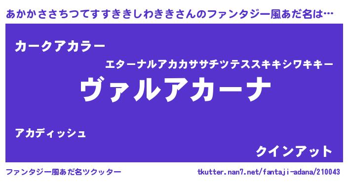 | 男性向けラノベタイトル風あだ名 | 『この素晴らしい世界にあかかささちつてすすききしわききを!』 |