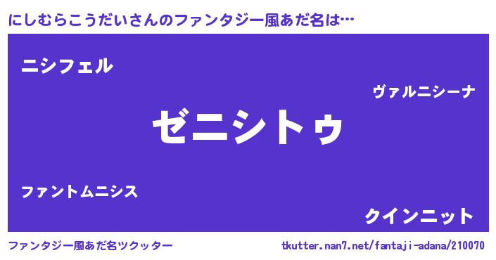 | 女子向けラノベタイトル風あだ名 | 『にしむらこうだいアンティーク』 |
