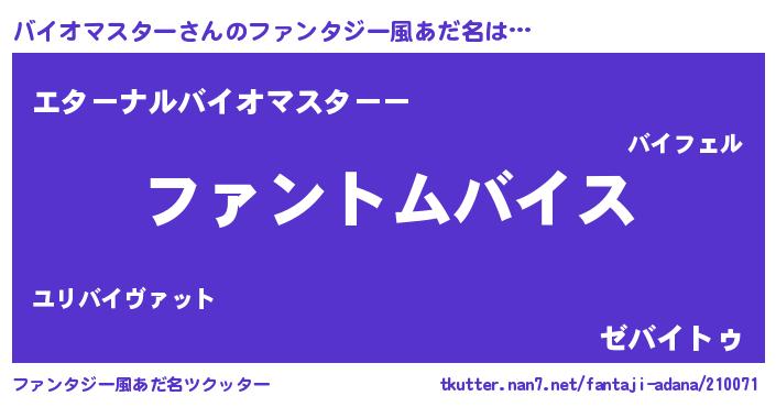 | ヒーロー風カッコイイあだ名 | 『幻影騎士バイ』『ネオバイオマスター』 |