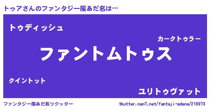 | 意味不明あだ名 | 『とにかく怪しいトゥア』 |