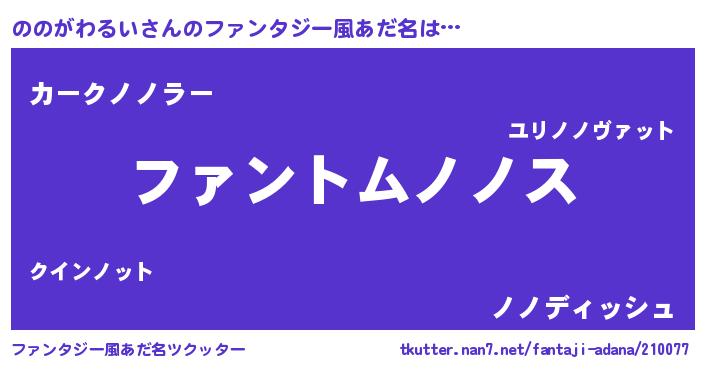 | 男性向けラノベタイトル風あだ名 | 『ダンジョンにののがわるいを求めるのは間違っているだろうか』 |