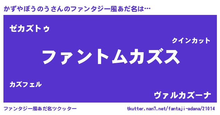 | 男性向けラノベタイトル風あだ名 | 『ダンジョンにかずやぼうのうを求めるのは間違っているだろうか』 |