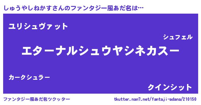 | 欧米人風あだ名 | 『しゅうやしねかすクリステル』 |