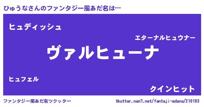 | 男性向けラノベタイトル風あだ名 | 『魔弾の王とひゅうな』 |