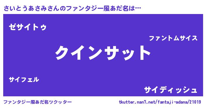 | ヒーロー風カッコイイあだ名 | 『慈愛の使者さいとうあさみ』 |