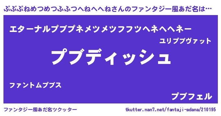 | 男性向けラノベタイトル風あだ名 | 『ぷぶぷねめつめつふふつへねへへねに滅ぼされるだけの簡単なお仕事です』 |