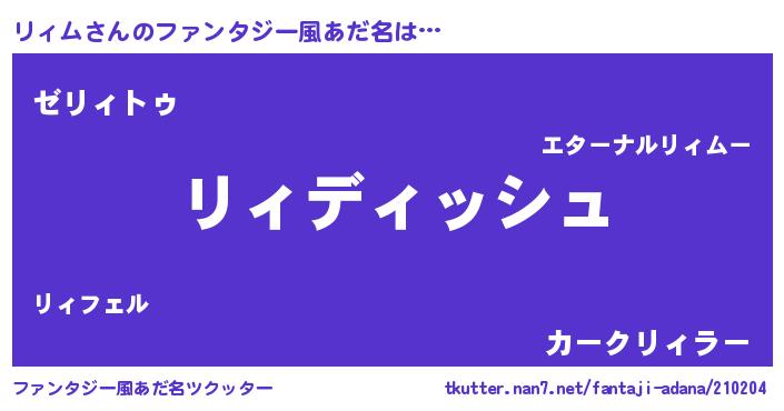| 意味不明あだ名 | 『永久保存リィム』『自称リィム』 |