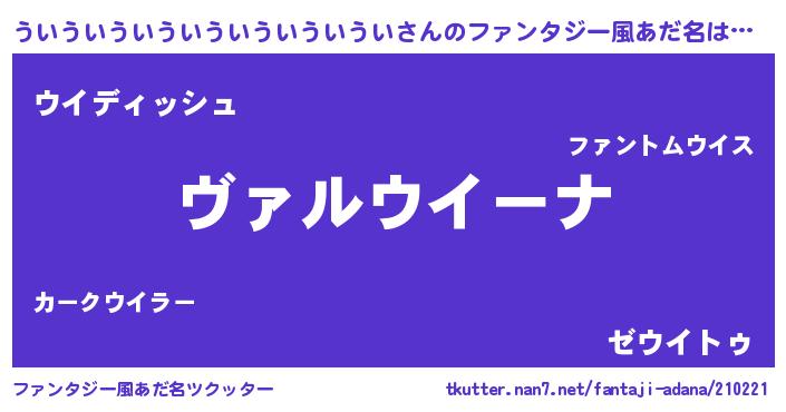 | 女子向けラノベタイトル風あだ名 | 『悪役ういういういういういういういういに転生したようですが、知った事ではありません』 |