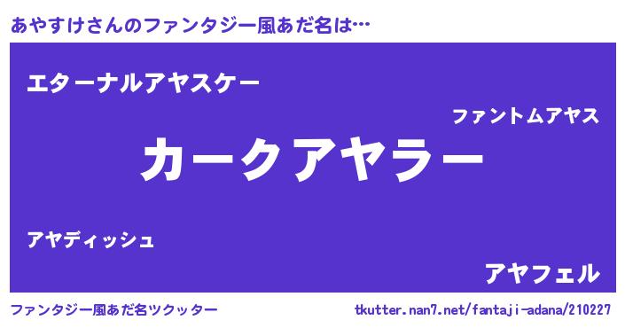 | 意味不明あだ名 | 『あやすけフォーエバー』 |