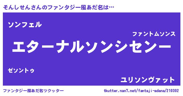 | 意味不明あだ名 | 『そんしせんフォーエバー』 |