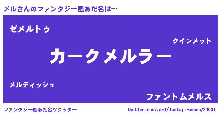 | 男性向けラノベタイトル風あだ名 | 『緋弾のメル』『はたらくメルさま!』 |