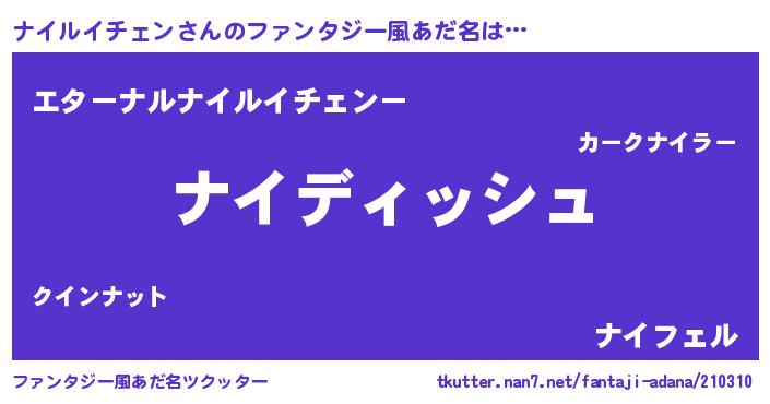 | 意味不明あだ名 | 『永久保存ナイルイチェン』 |