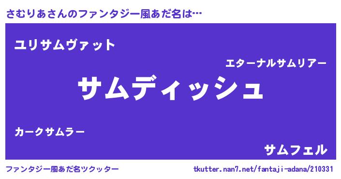 | ヘコむあだ名 | 『さむりあ(小並感)』『さむにー』 |