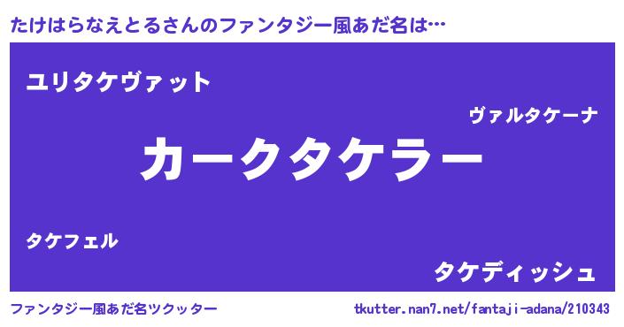 | ヘコむあだ名 | 『たけはらなえとる(小並感)』『たけにゅー』 |