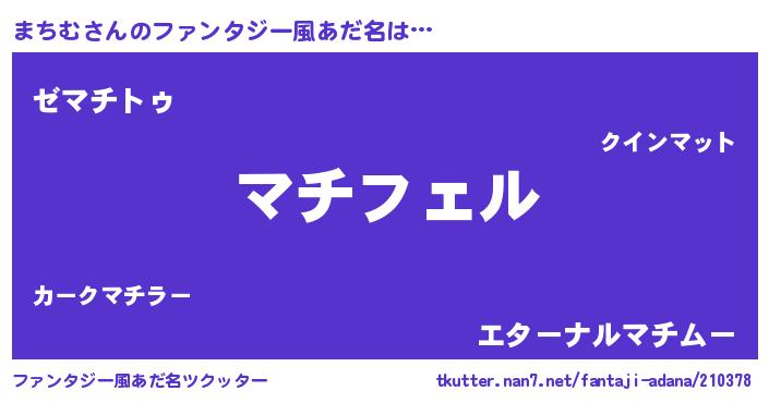 | 男性向けラノベタイトル風あだ名 | 『まちむの憂鬱』『魔法科高校のまちむ』 |