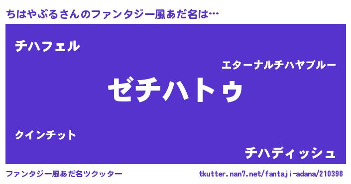 | 意味不明あだ名 | 『自称ちはやぶる』『ペロリンちはやぶる』 |