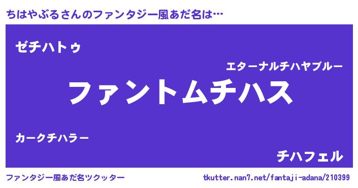 | ヒーロー風カッコイイあだ名 | 『幻影騎士チハ』『スーパーチハヤブル』 |