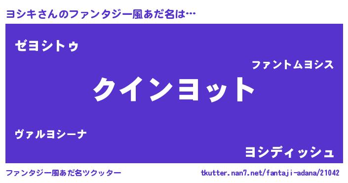 | 女子向けラノベタイトル風あだ名 | 『ヨシキ恋絵巻』『ヨシキの契約王妃』 |