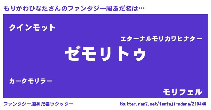 | 男性向けラノベタイトル風あだ名 | 『魔法科高校のもりかわひなた』 |