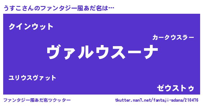 | ヒーロー風カッコイイあだ名 | 『仮面ウスダー』『正義の使者うすこ』 |