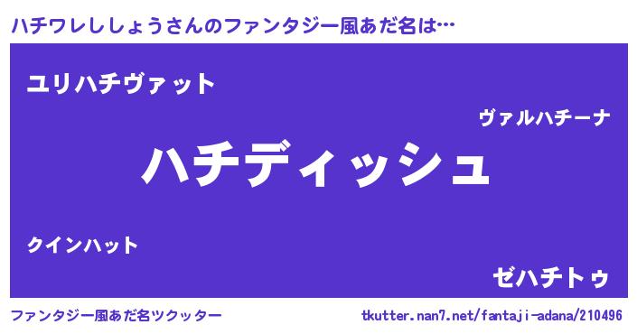 | ヘコむあだ名 | 『ハチワレししょう(笑)』『ハチにゅー』 |