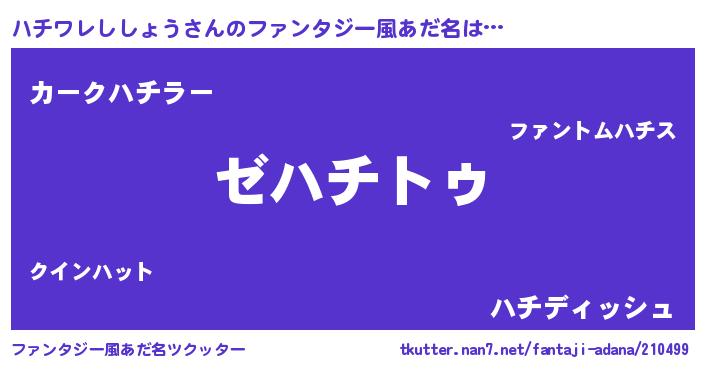 | ヘコむあだ名 | 『ハチワレししょう(爆)』『ハチお』 |